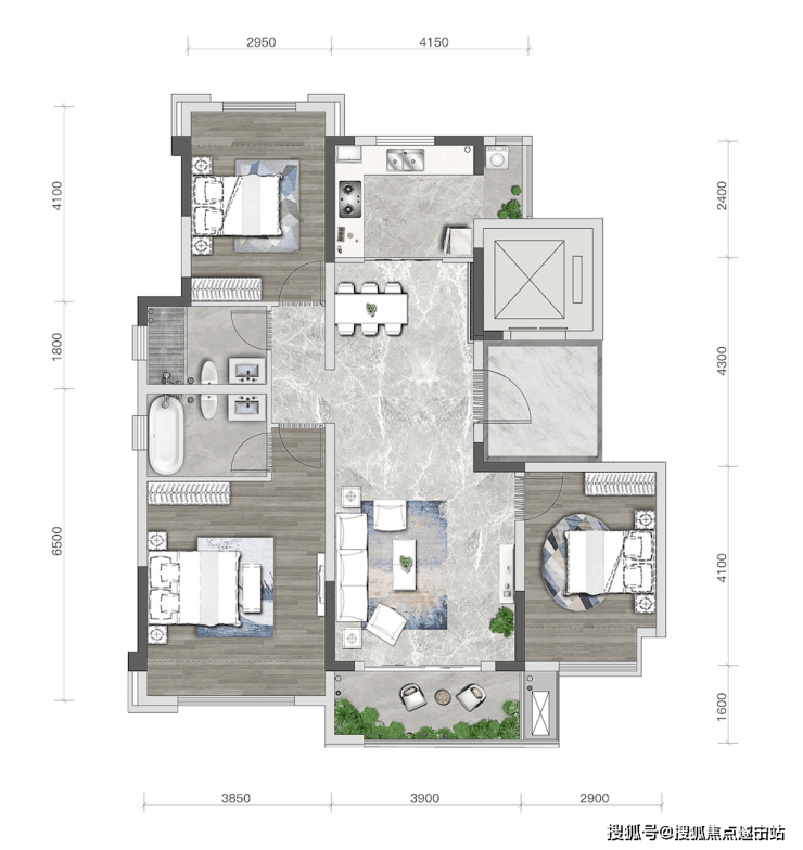 在有限的面积下,德信德商天骄之宸把小高层户型做到了极致:在保证功能空间都不落的情况下,尽量让每个功能空间达到最舒适的尺度。首先,该户型均拥有独立入户电梯,品质私密需求,空间灵活性高。配上全明空间设计,有效提高了公区的通风和采光。其次,独立的生活阳台和景观阳台,也能让休闲娱乐和家务两不误。最后,该户型主卧面积竟然达到22㎡左右,尺寸堪比市面上部分建面130㎡以上的改善户型。